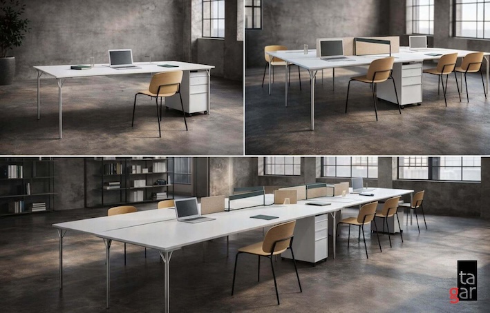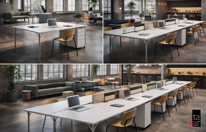 Equipos que crecen, departamentos que se reordenan, zonas que cambian de función. Aquí, las “mesas progresivas” son una ventaja brutal: empiezas por una configuración base y amplías sin romper la estética.