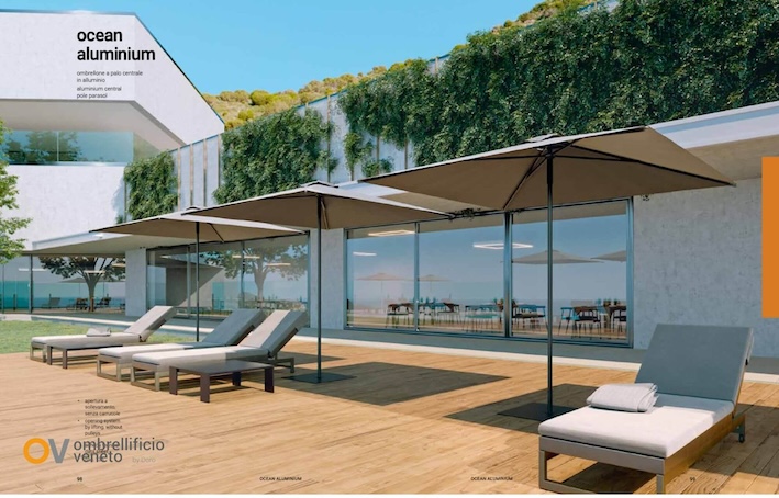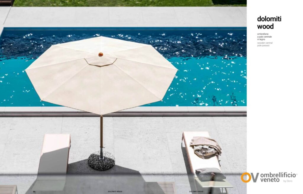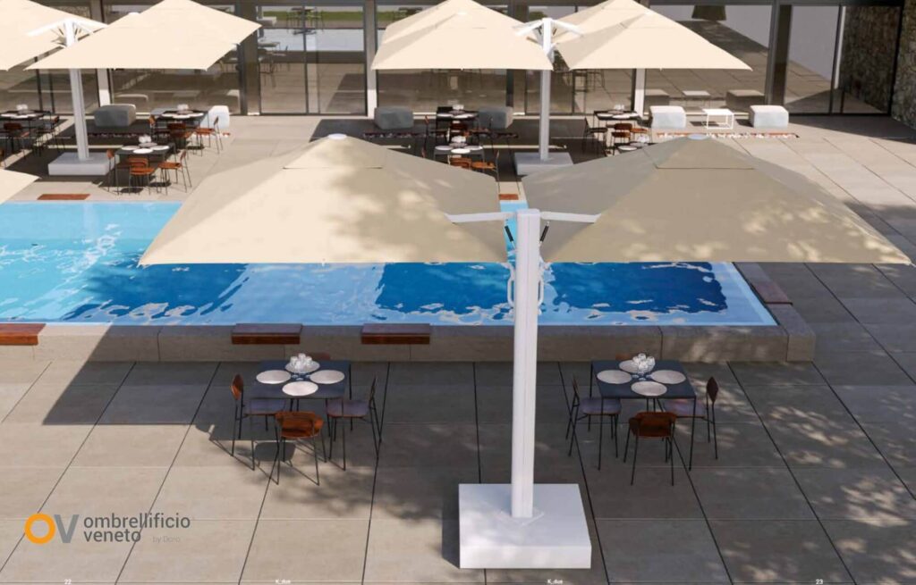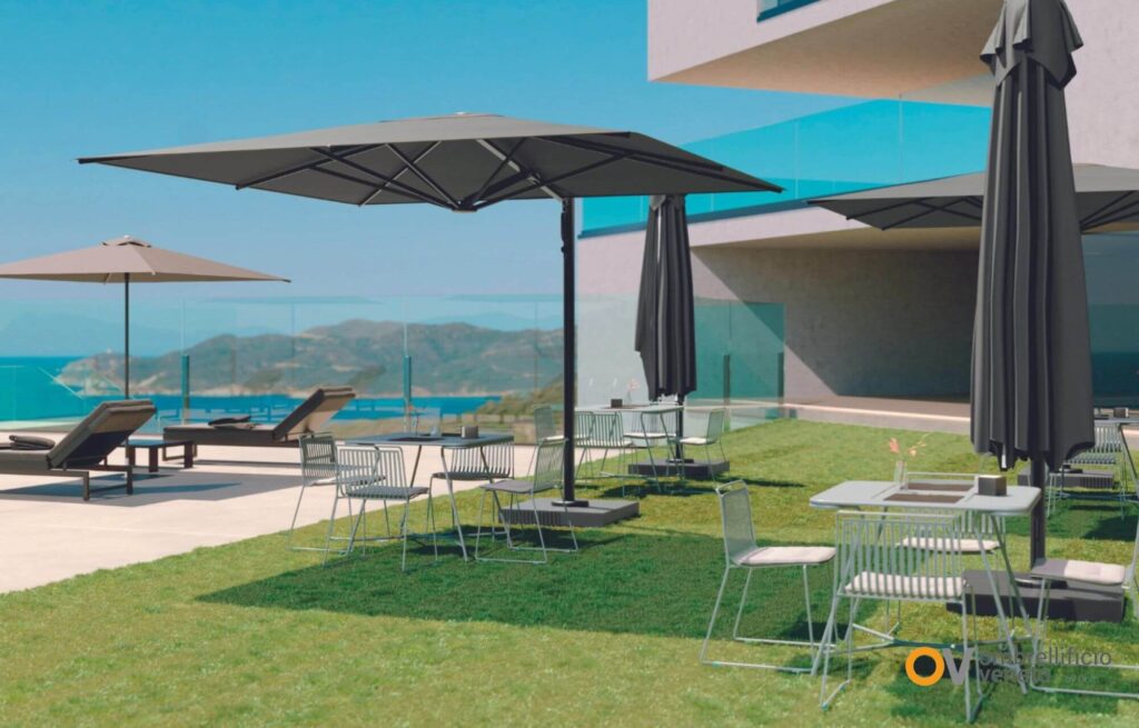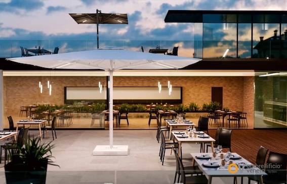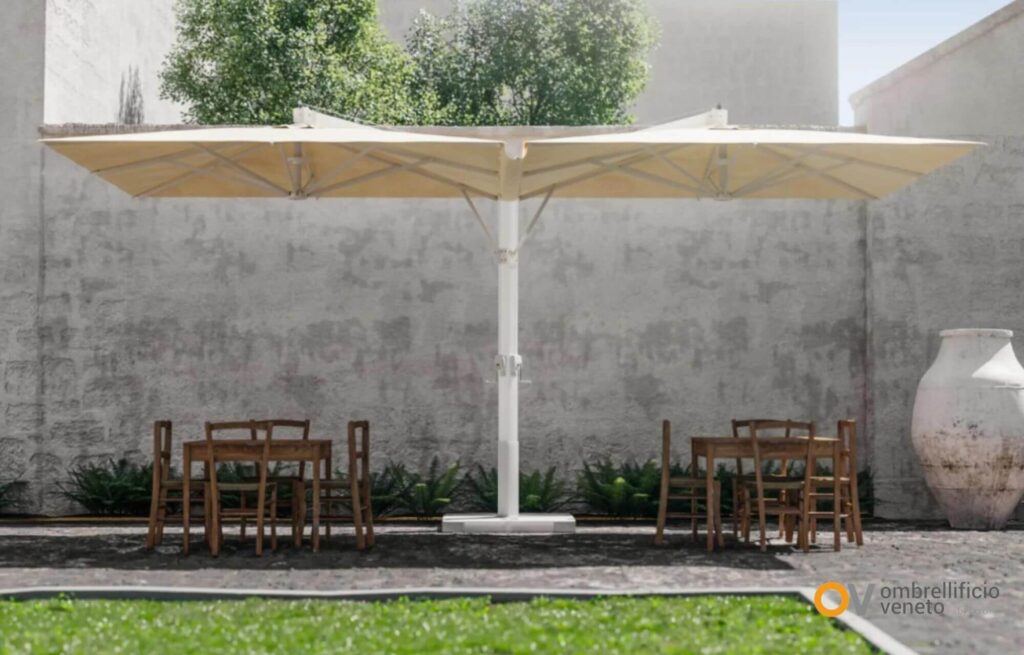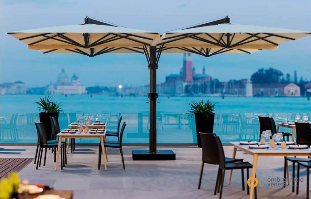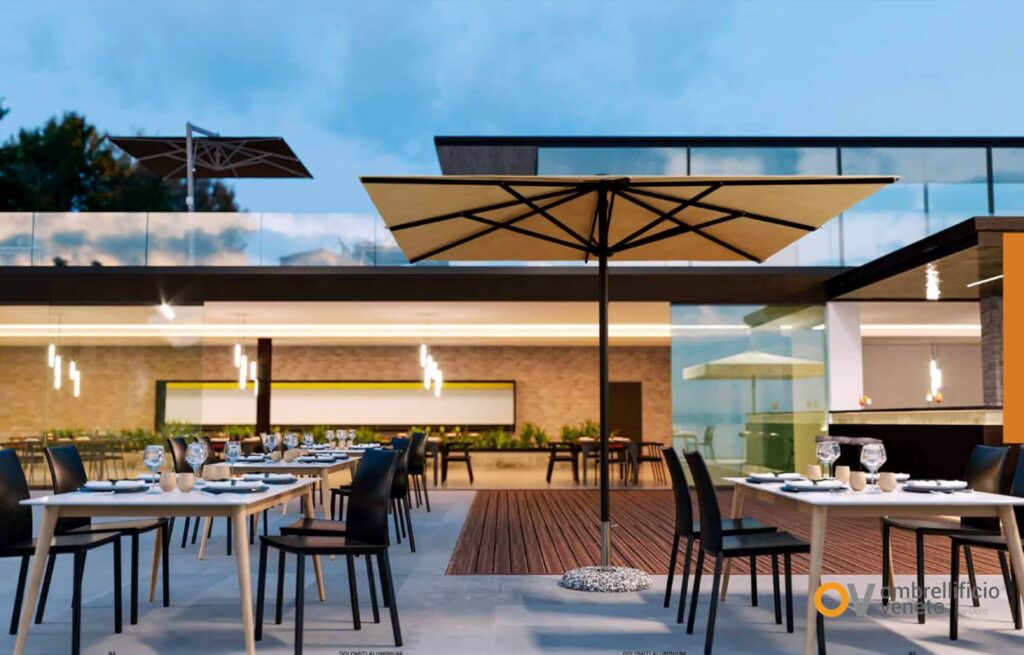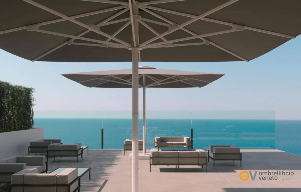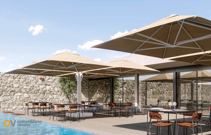 Ombrellificio Veneto trabaja precisamente en esa dirección: desarrollar sistemas preparados para el uso profesional, donde el diseño no renuncia a la belleza, pero tampoco se desentiende de la realidad climática del outdoor.