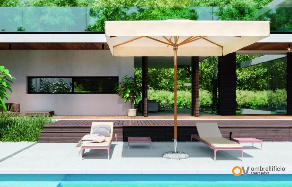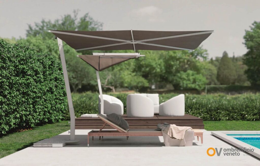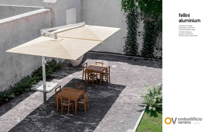 Dentro del nuevo catálogo de Ombrellificio Veneto hay una propuesta que resume muy bien esta manera de entender el espacio exterior.