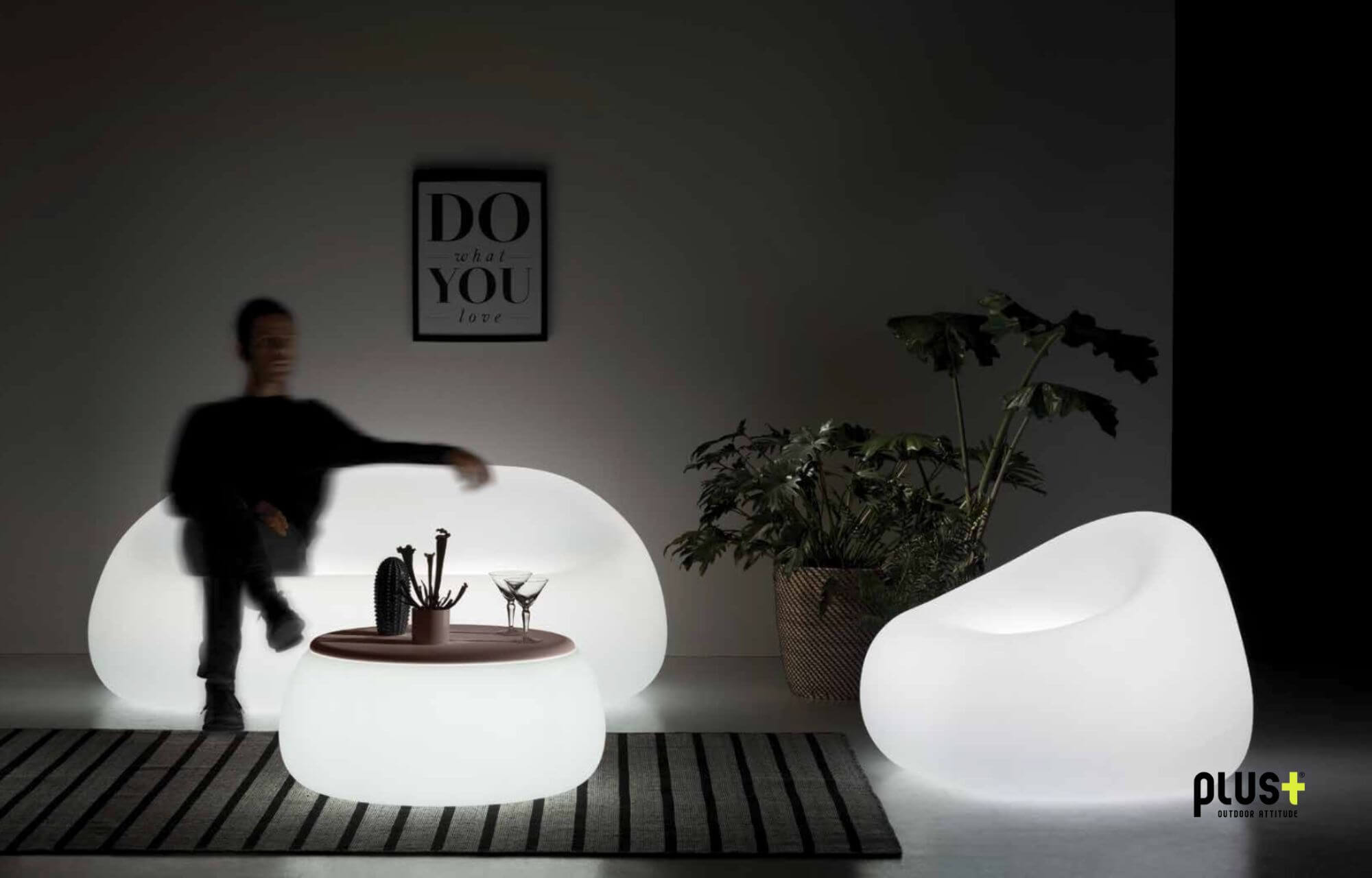 PLUST facilita ese tipo de gesto porque sus piezas, por sí mismas, ya tienen mucha presencia; si además las iluminamos desde dentro, el efecto es cinematográfico.